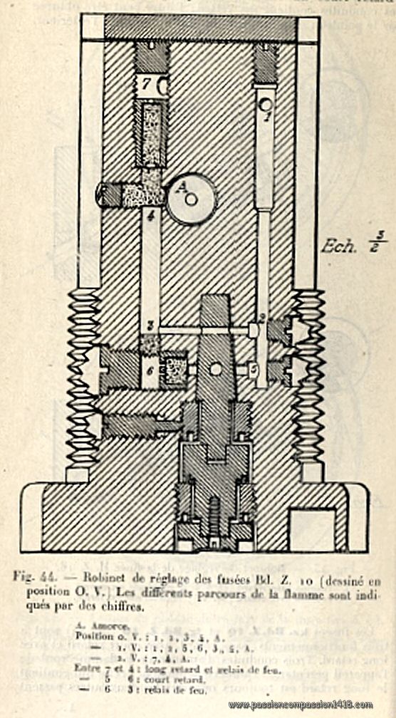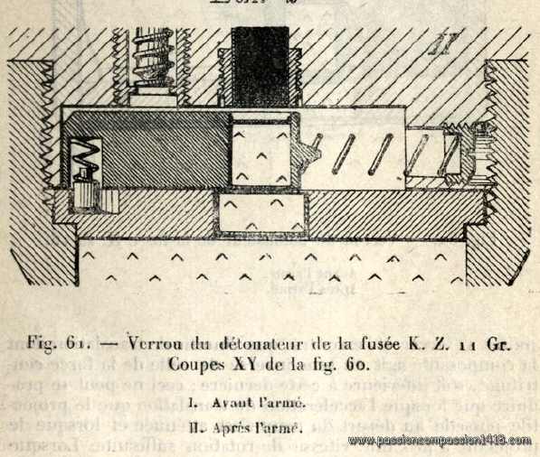 These parts of the artillery ammunitions, designed to trigger the burst at a defined part of the shell trajectory or at impact despite severe conditions before the shell was fired (humidity, shocks, corrosion, ...) and during its shooting (huge accelerations and decelerations, high heat, rapid spin, violent shocks) were remarkable high precision mechanisms. A fuze was also supposed to present all the safety guarantees for the gun crews : it had to be designed in order to sustain uncareful handling during transportation, uncontrolled storage conditions, and the violent acceleration of the shooting start in the tube without causing premature explosions, likely to destroy guns and servants... This additionnal specification added to the fuzes design complexity. It is interesting to note that the trend of the pre-war was to develop more and more sophisticated fuzes, while the war experience, new types of shells and artillery techniques, and war economics induced at the contrary the use or more and more simple fuzes. |