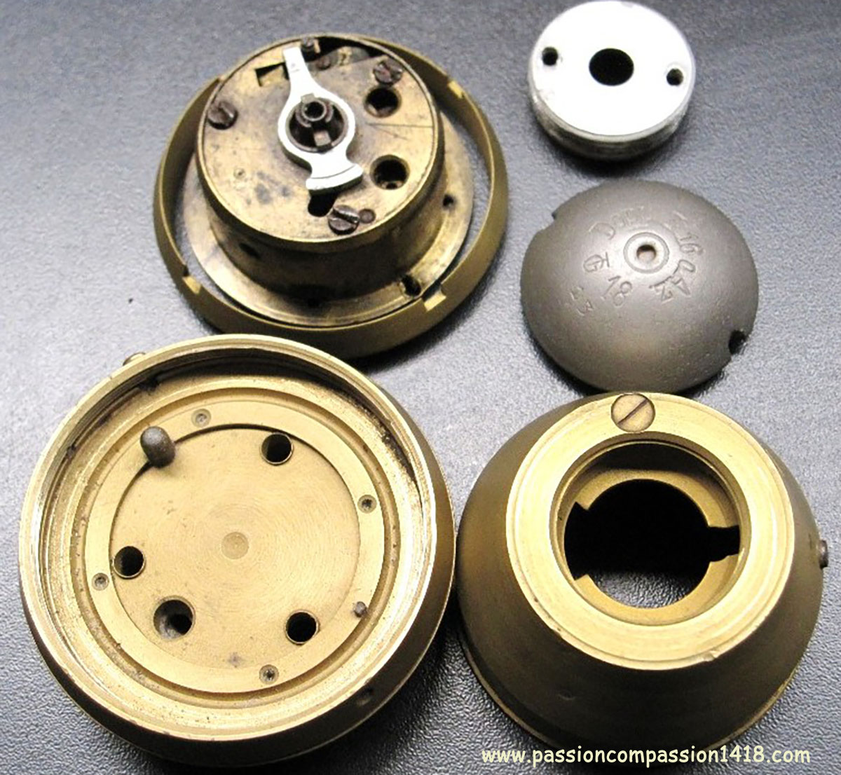 This created increasingly complex percussion fuzes, hiding a surprising number of components under seemingly simple and rough envelopes, like the EKZ16c fuze below