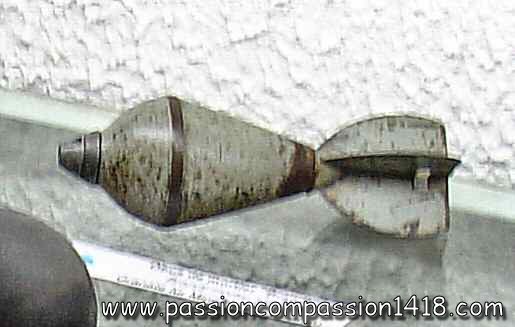 Feuillette grenade. The triggering tail device, the rod and the hollow aluminium ogive all disappeared. |