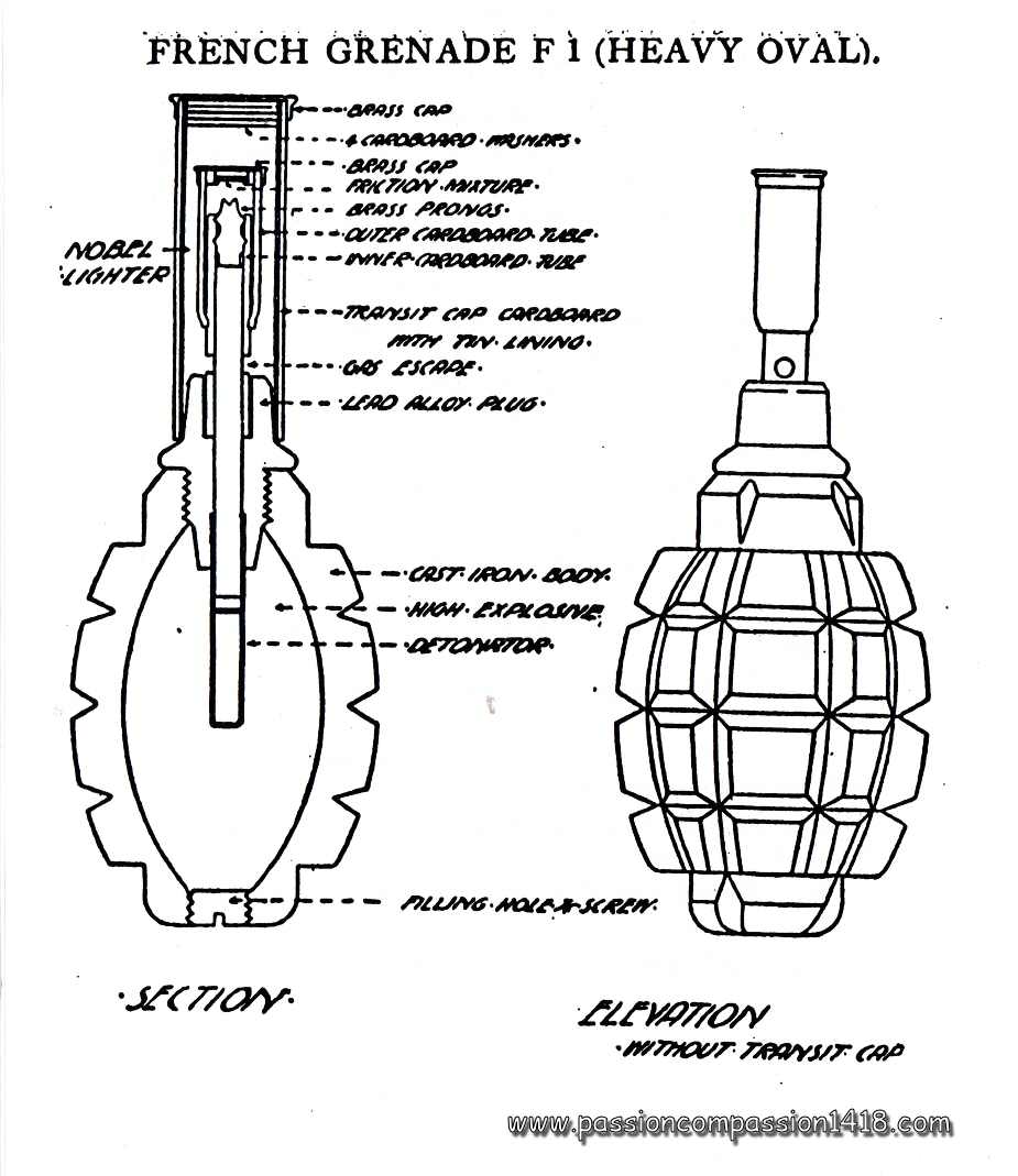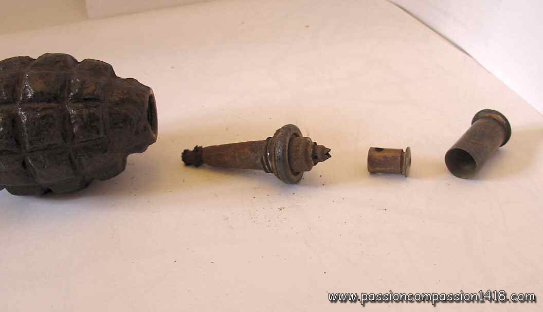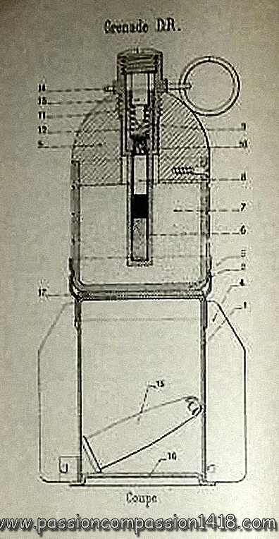 As soon as the 17th century, a major issue of the fuse grenades appeared to the fighters : as long as the wick is not totally consumed, it is always possible to send back the grenade to the expeditor ! The idea of a percussion grenade is therefore pretty old, but its design met a lot of complex problems that were far from being perfectly solved in 1914 in any of the fighting armies.