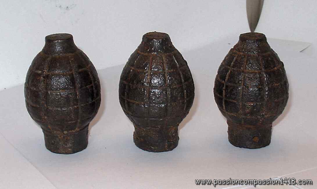 3 empty 'lemon' grenades (observed in Verdun - Côte du Poivre) |