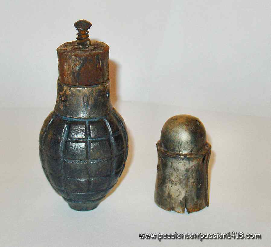 Foug 'lemon' grenade covered by the thin metal protection cap (observed in Champagne) |