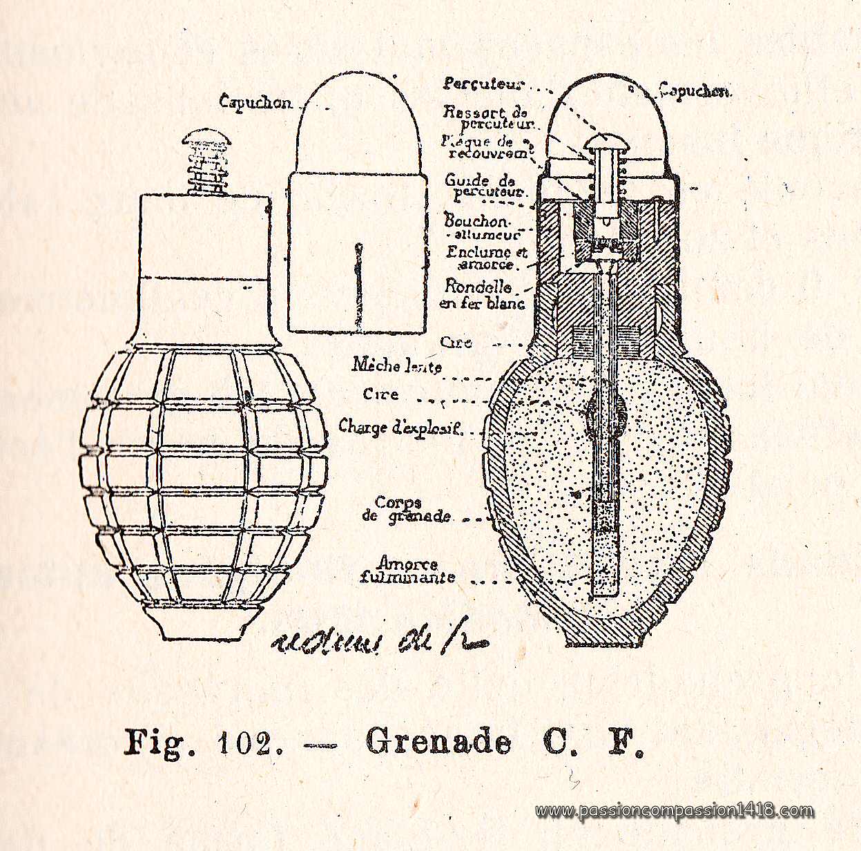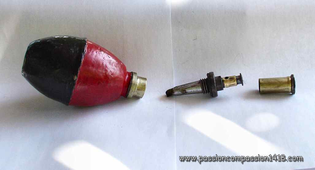 This grenade body will follow the technological evolution of the French ignitersLe corps de cette grenade va accompagner l'évolution technologique des allumeurs Francais. During WW1, it was successively mounted with a :