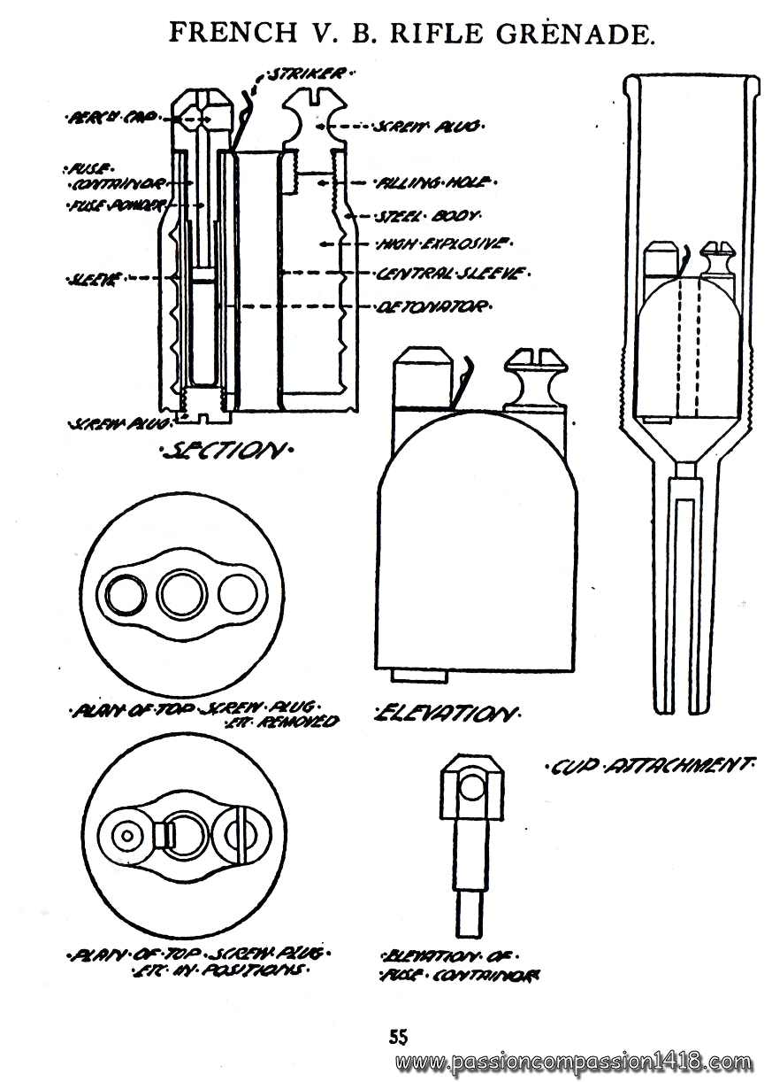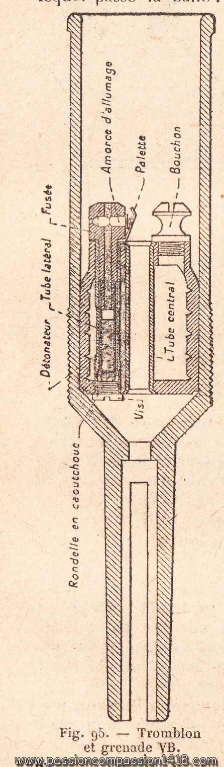 The VB grenade was shot using a grenade-sleeve fixed on the Lebel rifle, using a traditional ammunition rather than a blank cartridge, thus avoiding frequent accidents caused by ammo confusion in the fight stress.