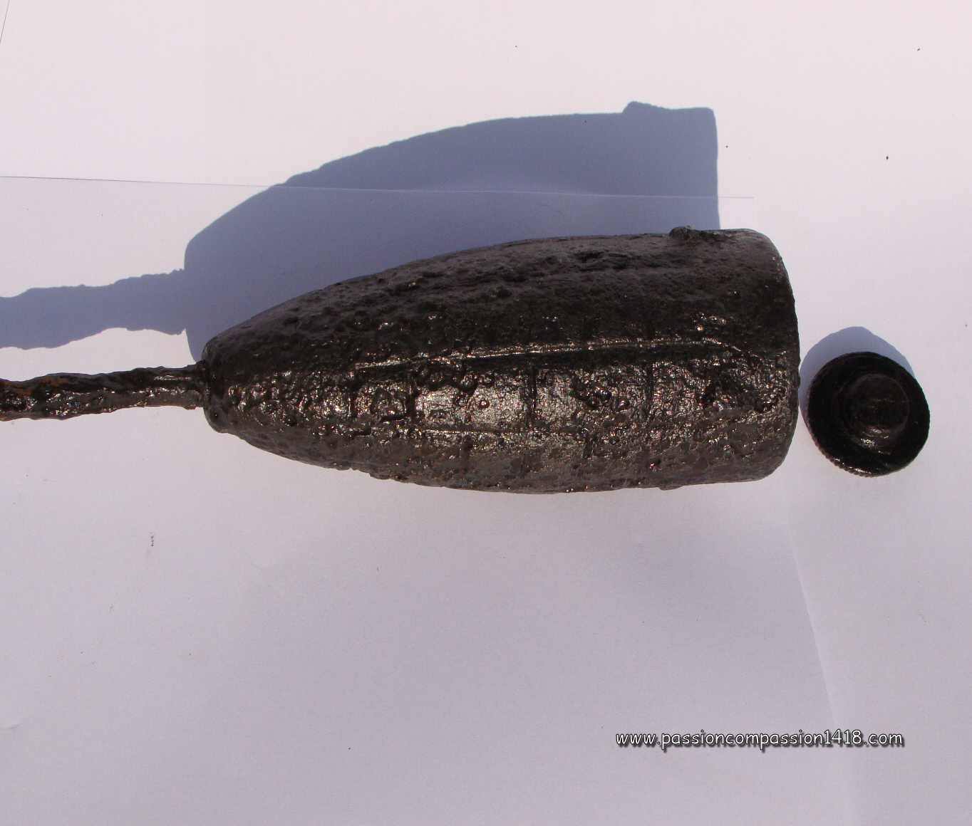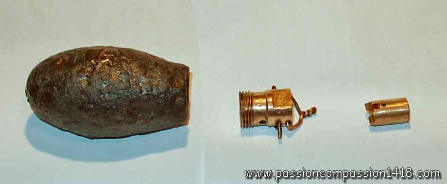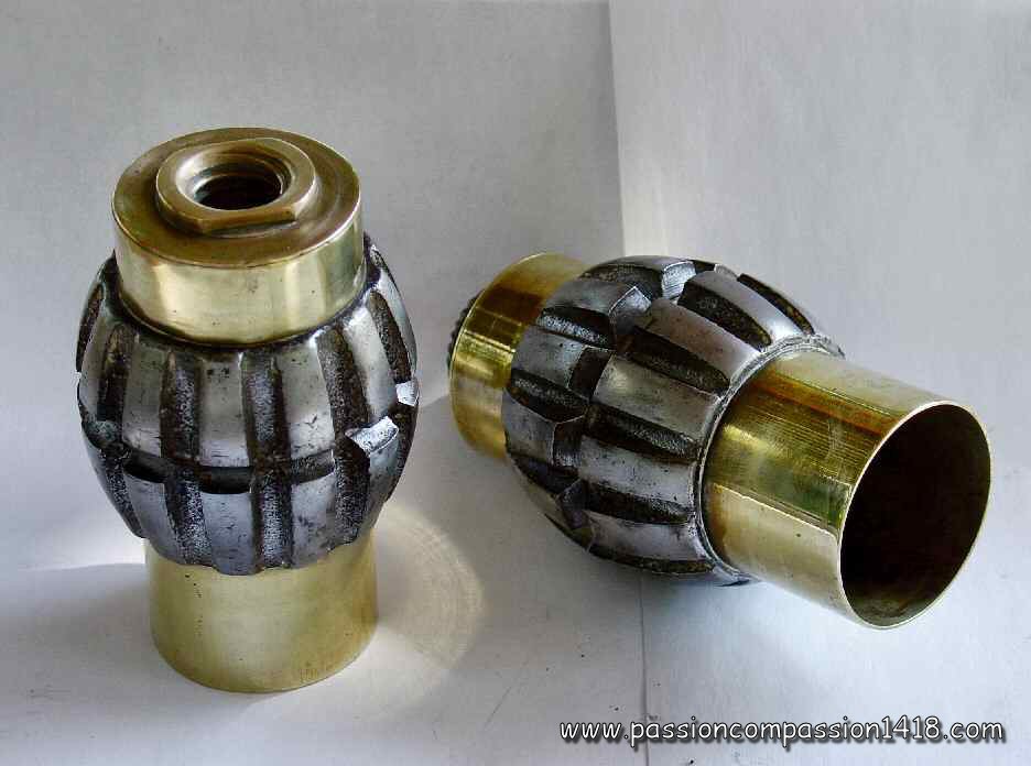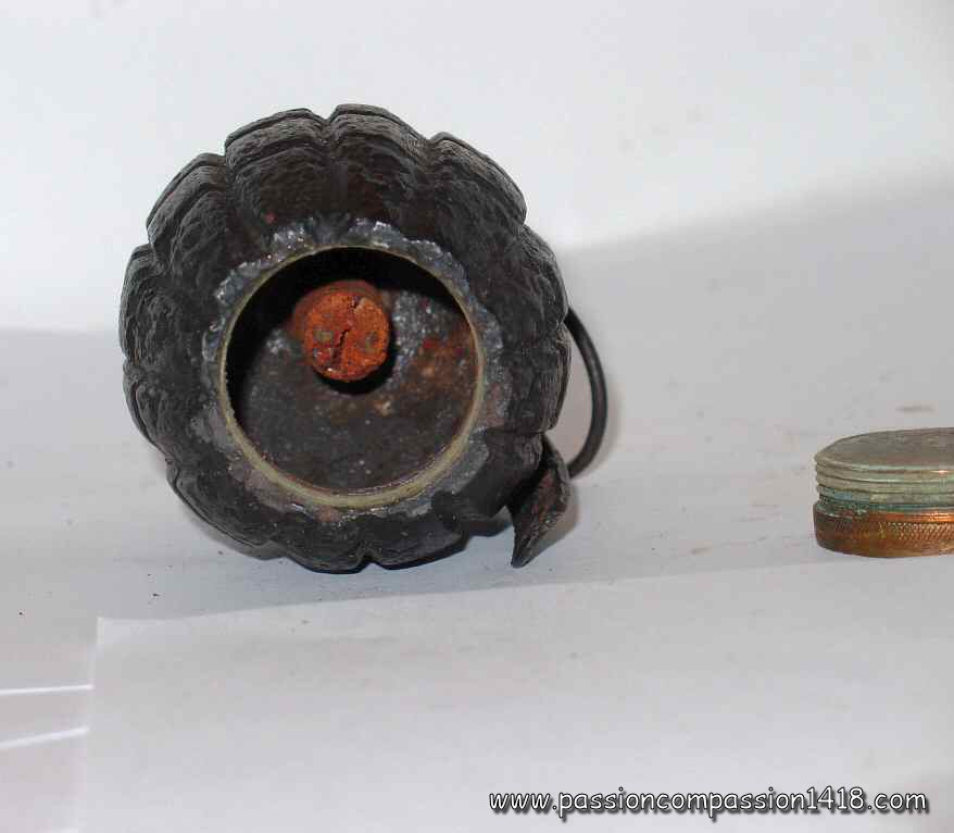Rifle grenade n°24 Mk I. Transverse prefragmented body - Picture courtesy Luc Malchair |