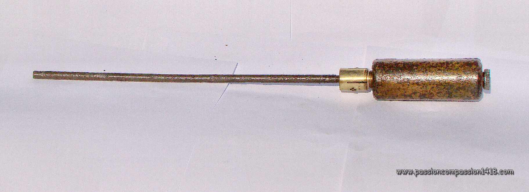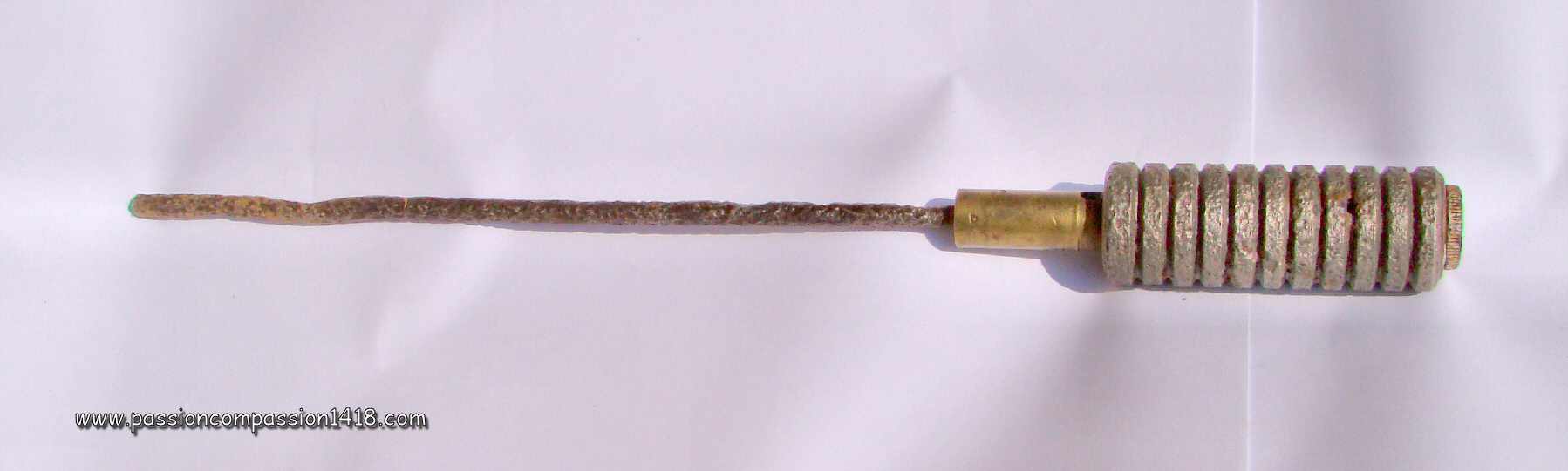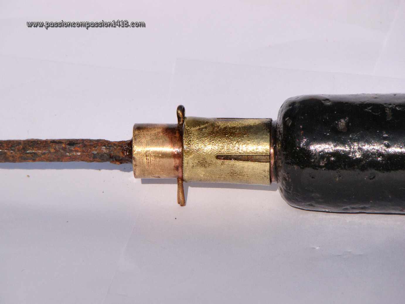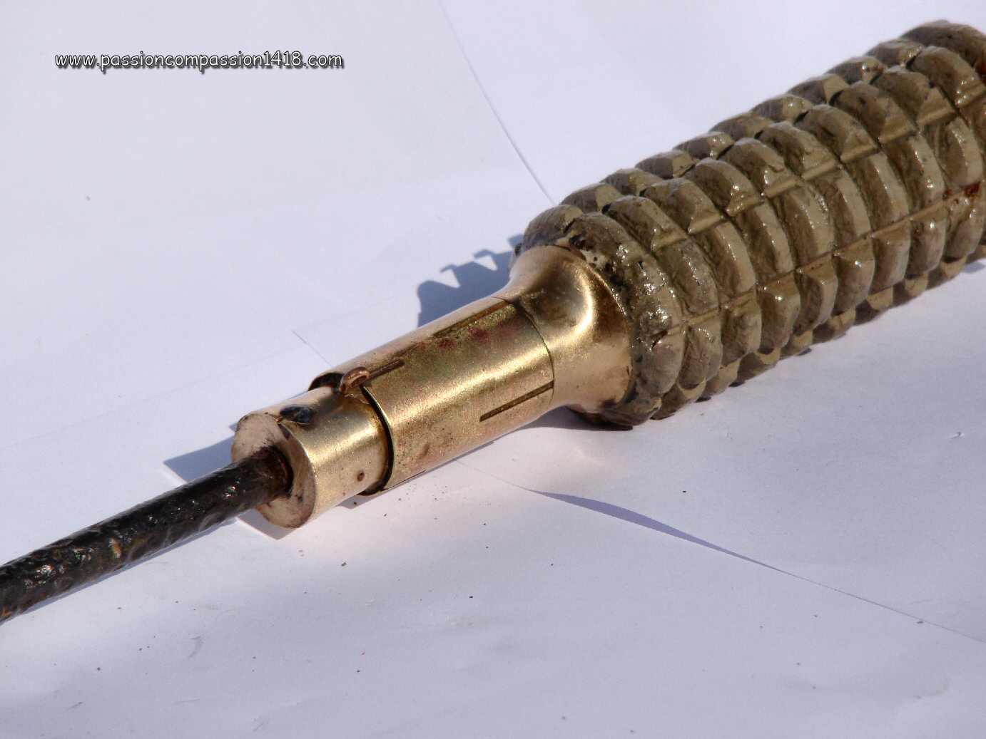 Rifle grenade N°35 Mk I, zoom on the shortened tail base, with safety pin |