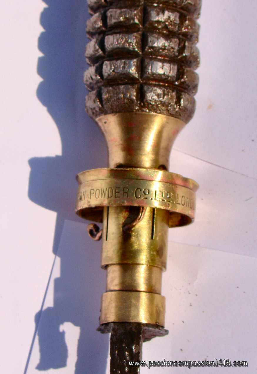Rifle grenade N°3 Mk II. Markings on the wind vane : 'THE COTTON POWDER Co Ltd - LONDON - HALE'S PATENT'. |