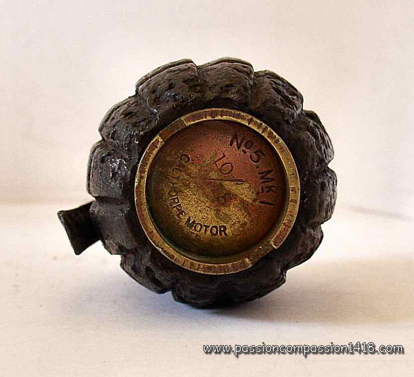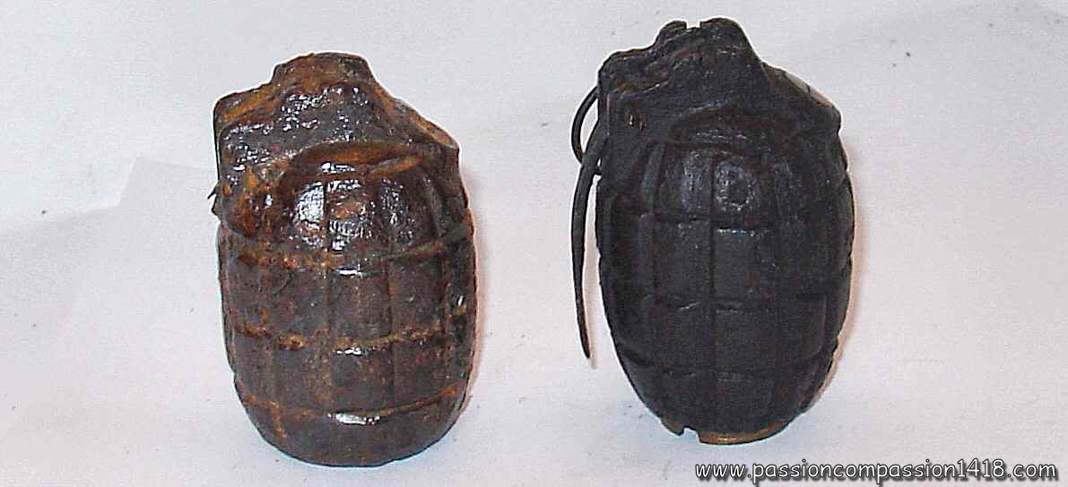 N°5 MkI Mills grenades. The left body has been observed in Flanders Fields, near Hooge. |
