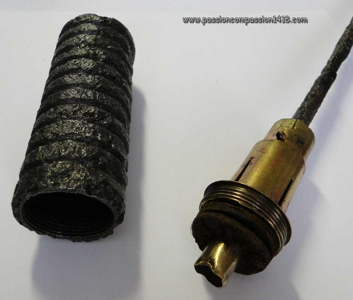 Rifle grenade N°2 Mk I. Detail of the body cut in two for trench art making. |
