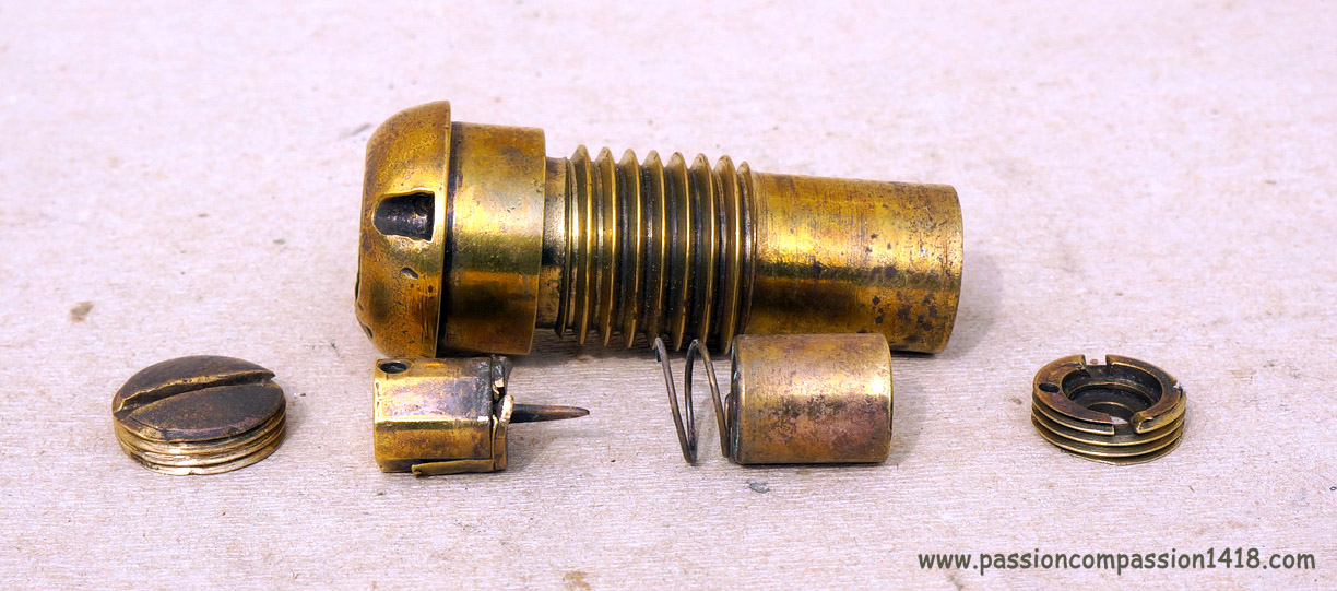 Les Schémas d'époque montrent que les trous situés sous le 'chapeau chinois' servaient également d'échappement pour les gaz de combustion des systèmes concutants et fusants.